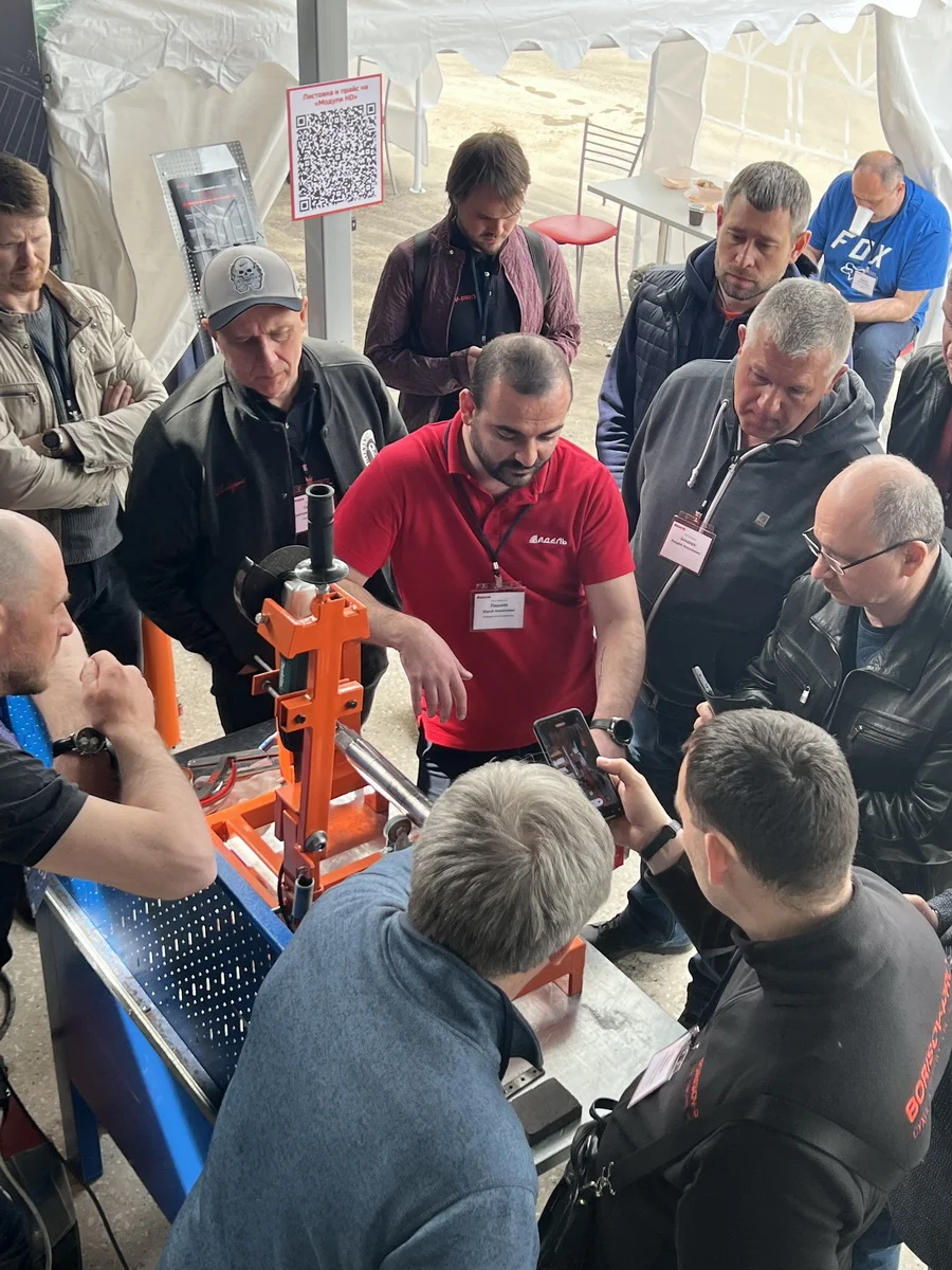 Участники семинара познакомились с основными принципами восстановления сменными модулями Heavy Duty. С инженерными особенностями корпуса модуля, специфики и вариантами крепления к корпусу коронки, а также смогли на практике увидеть весь процесс восстановления и последующего испытания восстановленной коронки. Особенно участников удивил процесс проверки модуля «на отрыв».
