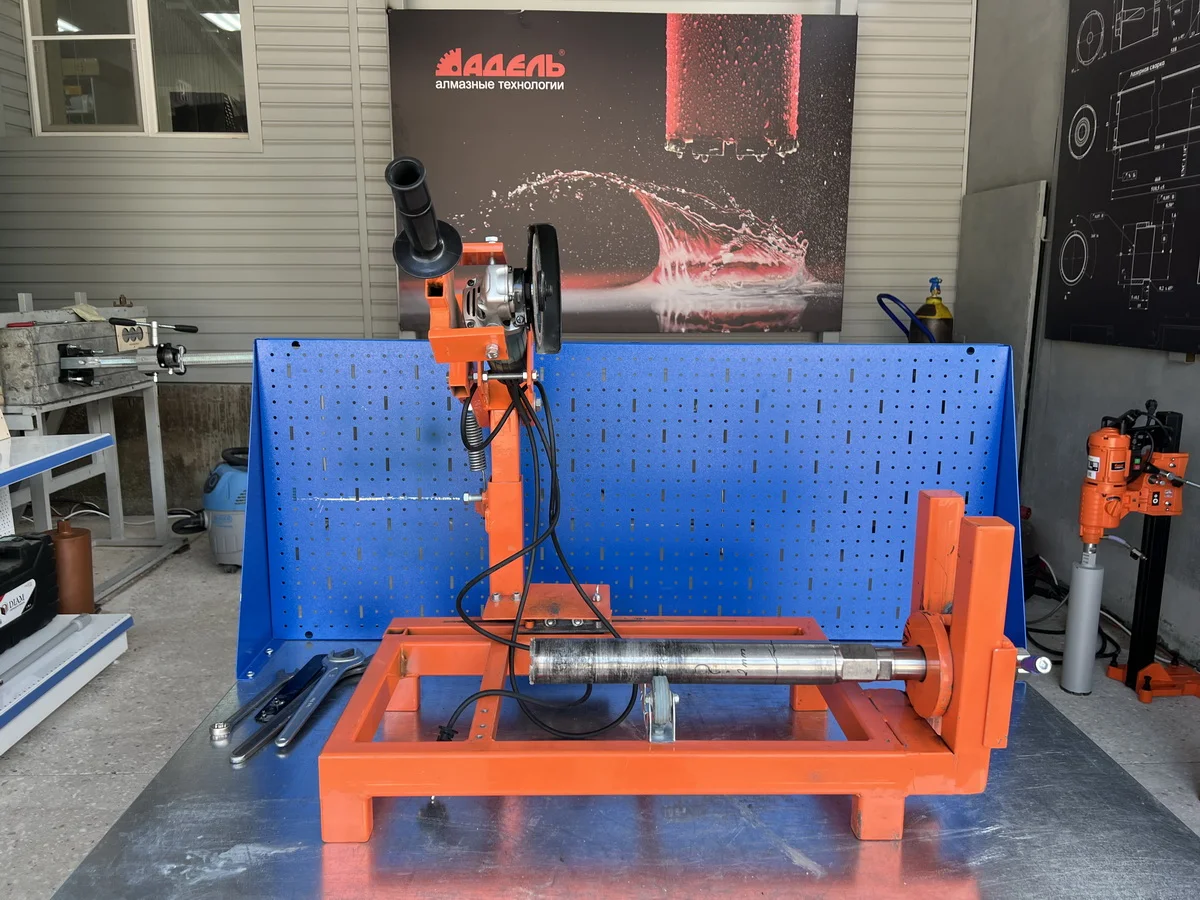 Помимо основной темы, на семинаре была продемонстрирована новая станина для сверлильных машин с поворотной осью. Не обошлось без «внеплановых» демонстраций. Так, на испытательном стенде, были показаны новые алмазные сегменты, которые, на данный момент, находятся в стадии разработки инженерного отдела гк Адель.