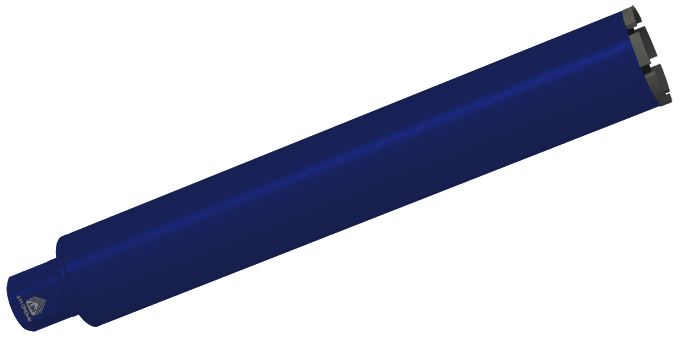 Инструмент выпускается в исполнениях длиной 450 и 900 мм, что позволяет точно подобрать коронку под конкретную задачу — будь то сверление в одной плоскости или проход сквозь толщу монолитных конструкций. При этом прочная геометрия корпуса и семисегментная режущая часть обеспечивают надёжную центровку и отсутствие биения при работе даже на пределе длины.