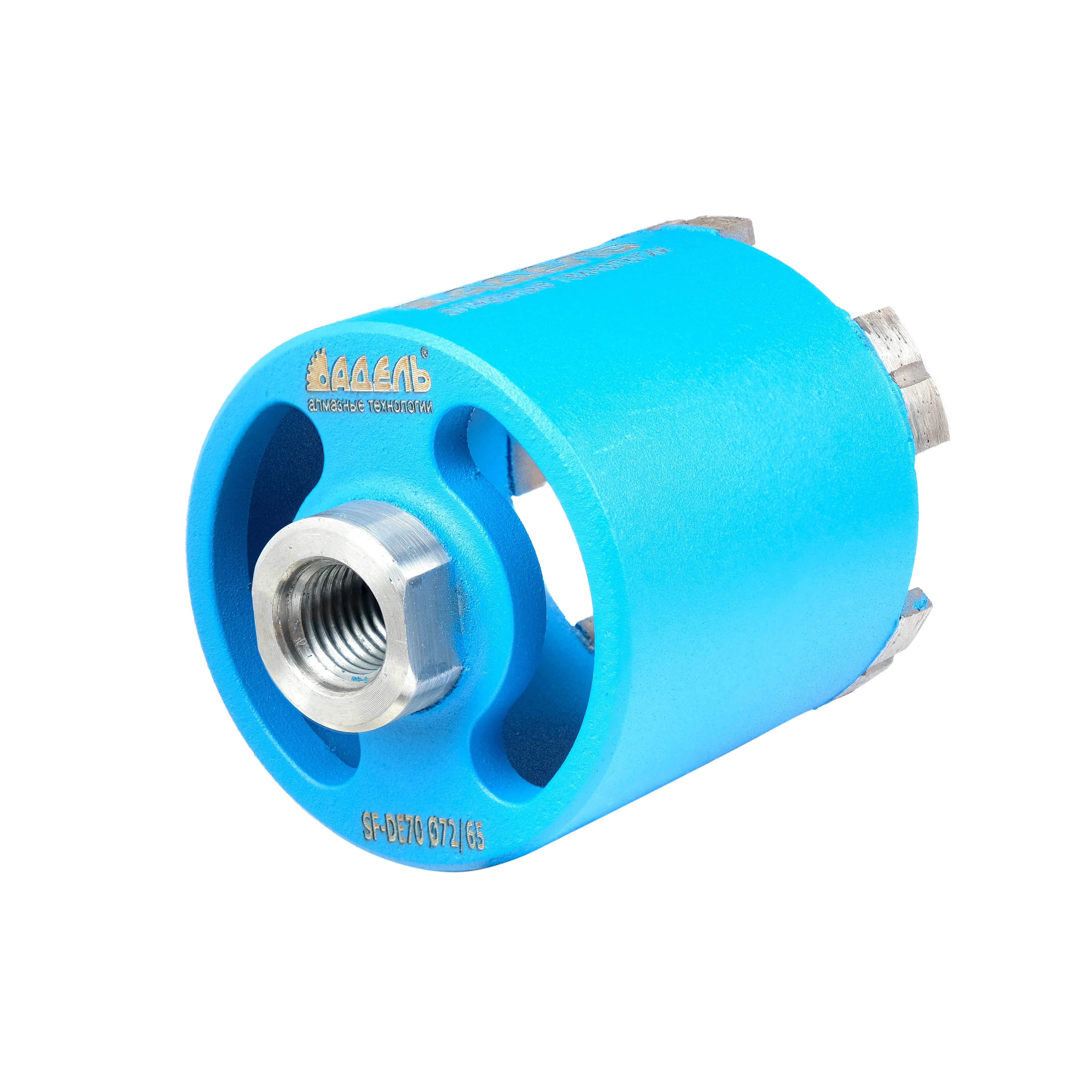 Пылеотводная система позволяет подключить промышленный пылесос и использовать систему пылеудаления «Адель» для подрозетников с резьбой M18 – М16. Соблюдать режим работы: обороты 1200 - 2000 об/мин. При снижении режущей способности, рекомендуем "вскрыть" (заточить) сегменты профессиональным кругом для вскрытия.