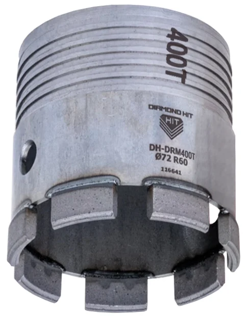 Резьбовая коронка Diamond Hit DH-D400Т DOUBLE L120 ∅72мм — это надежный инструмент для профессиональных работ по сухому алмазному сверлению, с применением функции микро удара.