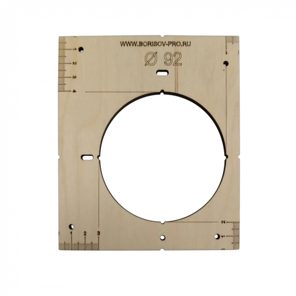 Шаблон со смещенным отверстием диаметром 92 мм предназначен для быстрого создания отверстий на любых плоскостях. Устройство используется для стен из гипсокартона, поверхностей из клееного бруса, керамической плитки, вагонки, панелей и других материалов. Шаблон отличается простотой в эксплуатации (не требует специального инструмента и навыков). Обладает высоким ресурсом работы, обеспечивает упрощение процесса монтажа подрозетников. Благодаря такому шаблону Вы максимально экономите время на проделывании отверстий, так как наносить обычную разметку не нужно.
