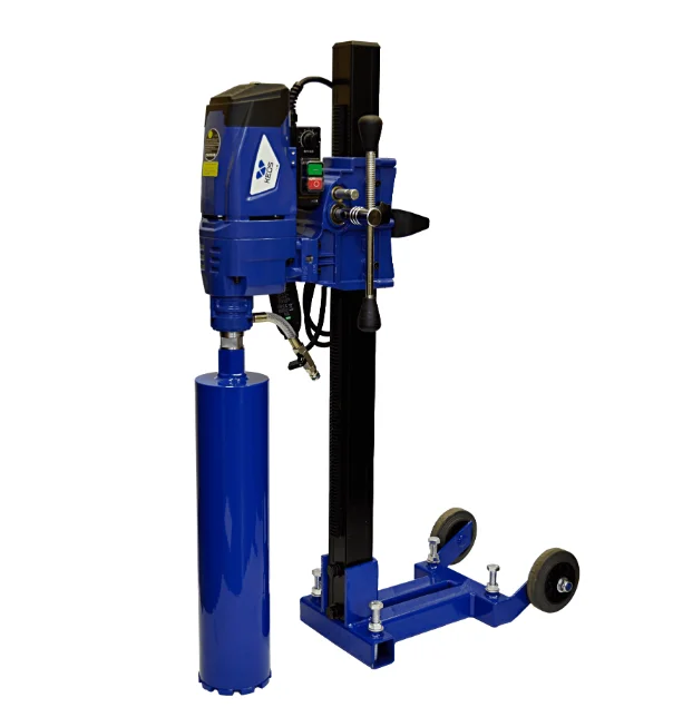 Установка алмазного бурения KEOS KS-250 – обновленный профессиональный сверлильный агрегат, применяемый для бурения мокрым способом отверстий диаметром от 12 до 250 мм в бетонных, железобетонных, кирпичных, каменных строительных поверхностях. Электропривод мощностью 2,8 кВт оснащен электронной системой защиты от перегрузки и перегрева при длительной работе. Устройство снабжено легкой и прочной станиной, позволяющей выполнять бурение под прямым углом. Установка идеально подходит для применения в отраслях строительства и ремонта.