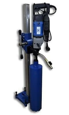 Установка алмазного бурения Keos KS 130/2 представляет собой ручную двухскоростную дрель, применяемую для бурения отверстий мокрым способом в бетоне, железобетоне, кирпиче, камне. Конструктивной особенностью установки является возможность работы как на станине, так и в ручном режиме. Диапазон сверления составляет от 16 до 130 мм. Электропривод мощностью 1,9 кВт оснащен предохранительной муфтой и защитой от перегрузки при продолжительной работе, а также масляным редуктором, который обеспечивает длительный срок эксплуатации устройства.