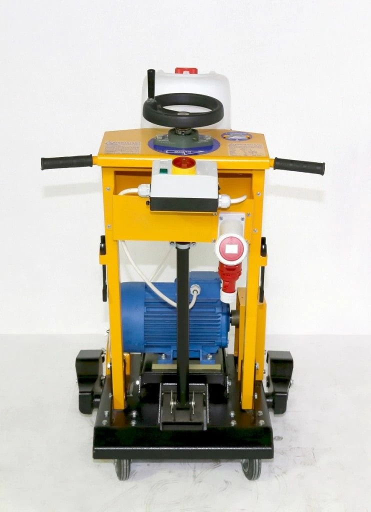 Раздельщик трещин Сплитстоун CS 915E – профессиональное строительное оборудование, предназначенное для разделки трещин, имеющих прямолинейную или криволинейную траекторию, а также резки объемных швов в бетонных, железобетонных, каменных, асфальтных строительных поверхностях. Установка оборудована электрическим двигателем ADM 132 M2 мощностью 11 кВт, позволяющим производить максимальную глубину реза до 70 мм одним или двумя алмазными дисками диаметром до 230 мм. Наличие пылеотвода и обратного вращения алмазного диска позволяет производить работы по резке трещин сухим способом, получая чистый и сухой шов.
