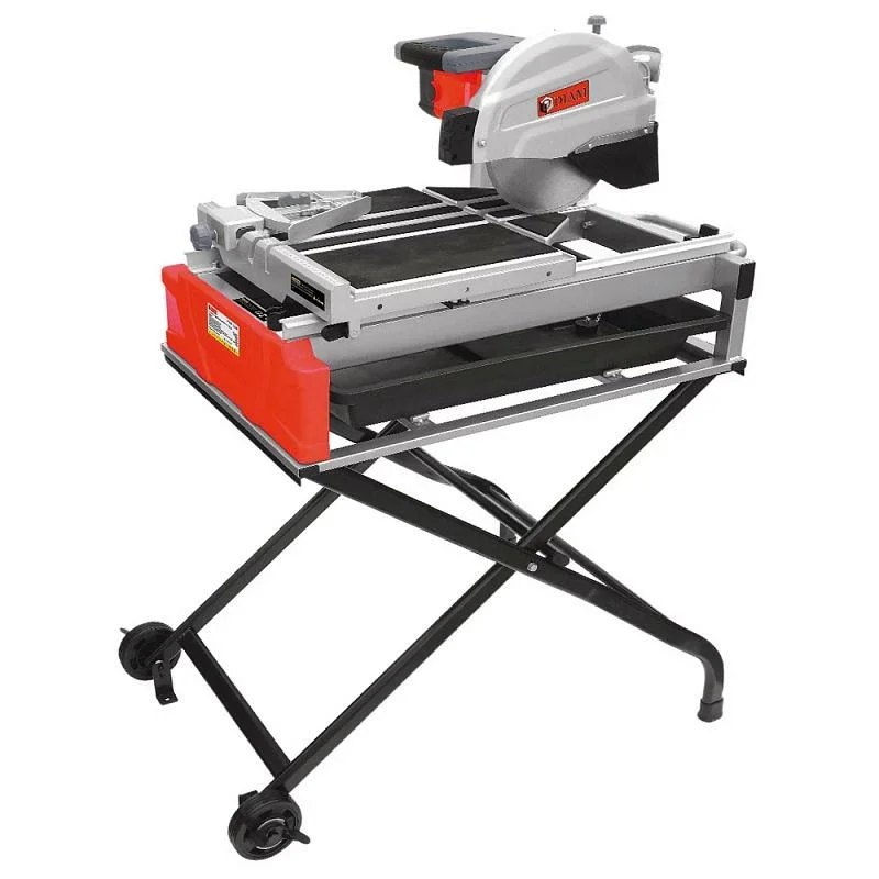 Камнерезный станок Diam PLK 250/1.8 Proline – оборудование для резки напольной, облицовочной и тротуарной плитки, а также кирпича и керамогранита. Данная модель оснащается электрическим двигателем мощностью 1800 Вт, питается от сети 220В. Станок работает совместно с дисками диаметром 250 мм, оснащается погружным насосом, который подает воду на режущий инструмент из поддона. Плиткорез имеет надежную конструкцию со складными ножками. Удобство в транспортировке обеспечивается за счет колес.