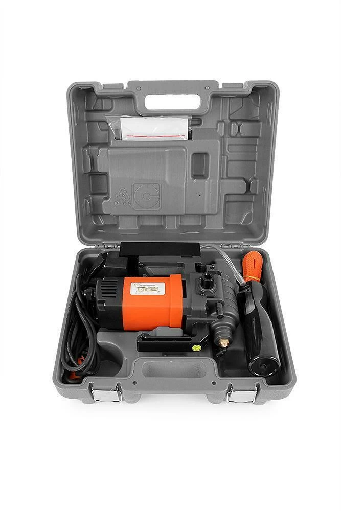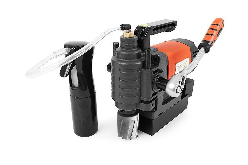 Магнитный сверлильный станок MESSER MDMG-35 горизонтального типа – устройство, предназначенное для сверления отверстий диаметром до 38 мм. Данная модель оснащается электродвигателем мощностью 1.65 кВт, отличается небольшими габаритами, за счет чего обеспечивается комфортная эксплуатации в ограниченном пространстве. Среди особенностей – быстросъемная рукоять (может устанавливаться с правой или с левой стороны корпуса), система подачи смазочно-охлаждающей жидкости с помпой, обеспечивающая защиту от перегрева.